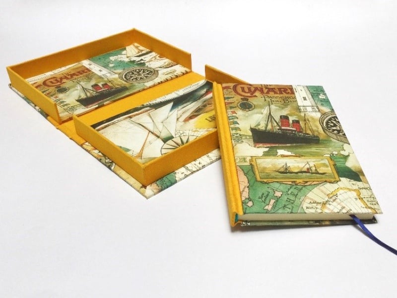 Caja con compartimentos y encuadernación