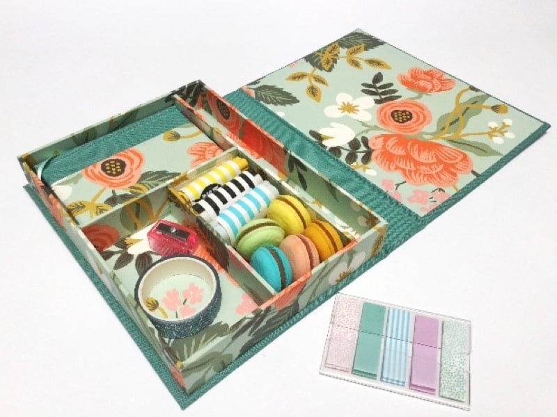 En este taller aprenderás a realizar una caja rectangular con divisiones la cual está unida a su tapa y podrás decorar a tu agrado con nuestros papeles para darle un toque único. Al finalizar el taller habrás aprendido los conceptos básicos de la estructura de una caja, a unir las paredes que forman el cuerpo de la caja, a elaborar una tapa que se ensamble perfectamente y a decorar con diferentes materiales clásicos que no solo sirven para encuadernación.